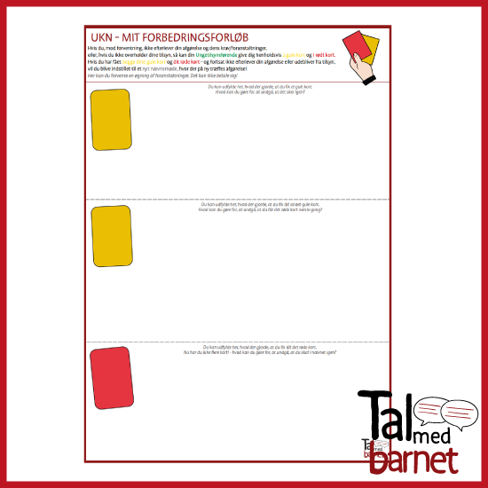 Skabelonen er tiltænkt som både forklaringsredskab såvel som udfyldeark til løbende refleksion. Kan f.eks. udfyldes når/hvis den unge får givet 1+ Gule kort og herefter skal udfylde, hvordan fremtidige kort kan undgås.